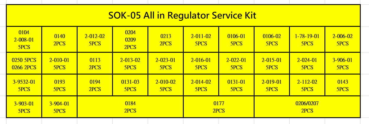 This box contains all the parts required for servicing the regulators we manufacture.