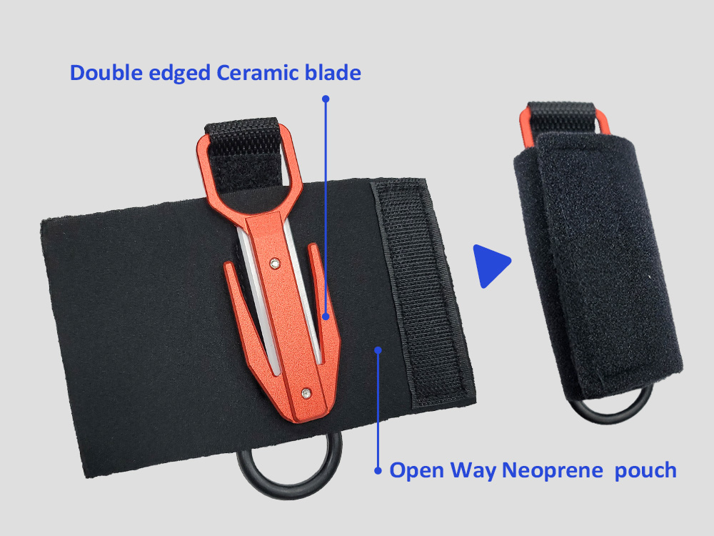 the blade is corrosion resistant, with ingeniously designed pouch , easy to attached any dive gear